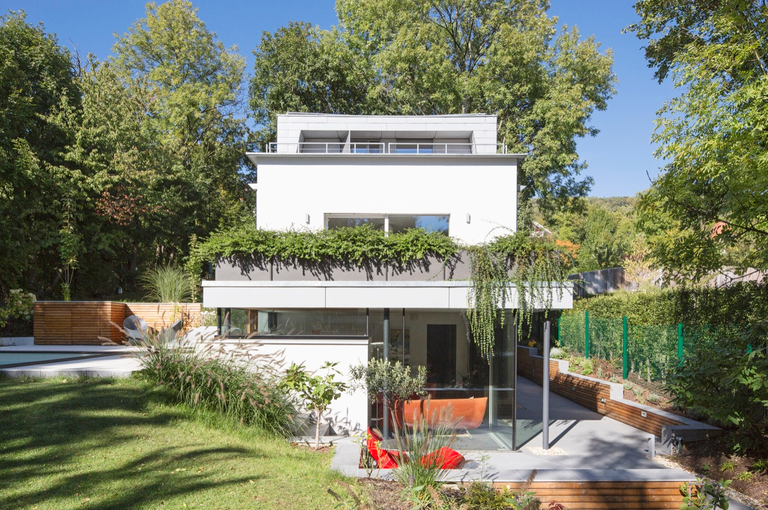 Der Bauherr hatte das Haus tatsächlich günstig bekommen. Es stand auf einem großen Grundstück mit Garten – und das mitten in Wien. Eine Seltenheit. Deshalb scheute er den Sanierungsaufwand nicht. Wir haben die Fenster erneuert, das Haus gedämmt, die Haustechnik auf den neuesten Stand gebracht und einen Wintergarten mit viel Glas angebaut, der als Wellnesstempel dient. Es gibt eine Sauna, den Blick ins Grüne, einen Pool im Garten. Die Optik hat sich massiv verändert. Nun sieht es aus wie ein völlig anderes Gebäude.