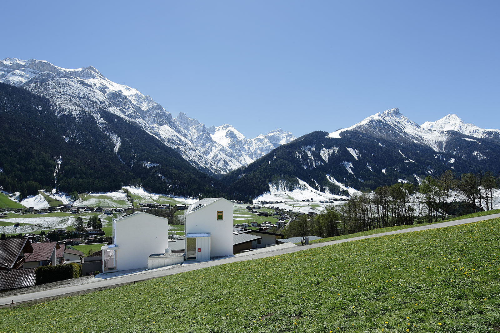 Manchmal trifft man den richtigen Partner für das Traumhaus auch auf einer Party. So wie Daniel Fügenschuh vor ein paar Jahren einen jungen Familienvater kennenlernte, der mit seinem kleinen Budget ein Fertighaus bauen wollte – und gar nicht daran dachte, einen Architekten hinzuzuziehen. Fügenschuh konnte ihn mit seinem klaren architektonischen Konzept überzeugen. Heute lebt die Familie in einem aufsehenerregenden 150 Quadratmeter großen vorgefertigten Niedrig-Energie-Haus aus Holz mit großen Fenstern, die den Blick auf die zentrale, frei abgehängte Treppe freigeben.