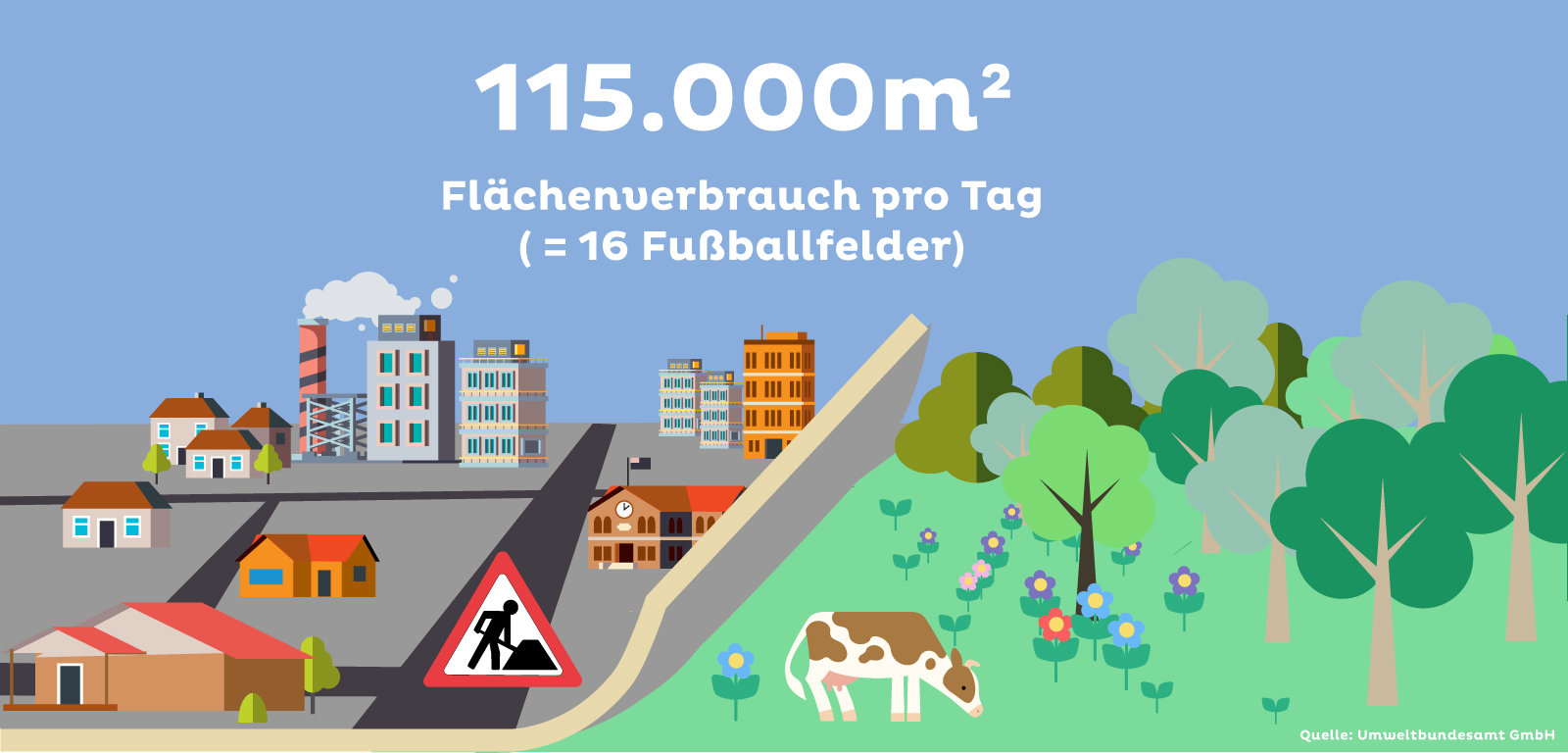 Die Zersiedelung Österreichs schreitet voran. Tag für Tag wird eine Fläche von 11,5 ha „verbraucht”, das sind 115.000 m² und entspricht 16 Fußballfeldern. Im Laufe eines Jahres kommt so eine Fläche von 42 km² zusammen. Das entspricht der Größe von Eisenstadt. Der Flächenverbrauch von 11,5 ha pro Tag ist damit noch weit entfernt den 2,5 ha pro Tag, die sich die Bundesregierung bis 2030 zum Ziel gesetzt hat. Der Flächenverbrauch fällt von Bundesland zu Bundesland unterschiedlich aus. Am höchsten ist er mit 3,3 ha pro Tag in Oberösterreich, am niedrigsten ist er in Salzburg (0,4 ha), Vorarlberg (0,4 ha) und Wien (0,2 ha). Auf jeden Österreicher kommen bereits 268 m² „versiegelte” also bebaute Fläche.