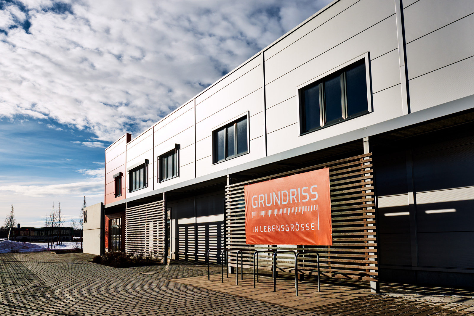 Bei „Grundriss in Lebensgröße” schicken Bauherren und -frauen den Grundriss ihres künftigen Heims als PDF-Datei. In einer Gewerbehalle wird er mit einem Hochleistungsbeamer 1:1 auf den Boden projiziert, inklusive Garten und Außenanlagen. Anschließend wird nach Vorgabe möbliert: Echte Möbel und Küchenmodule, sowie verschiebbare Wände und Sanitäranlagen stehen bereit, um so lange einfach hin und hergeschoben zu werden, bis die Aufstellung perfekt passt.