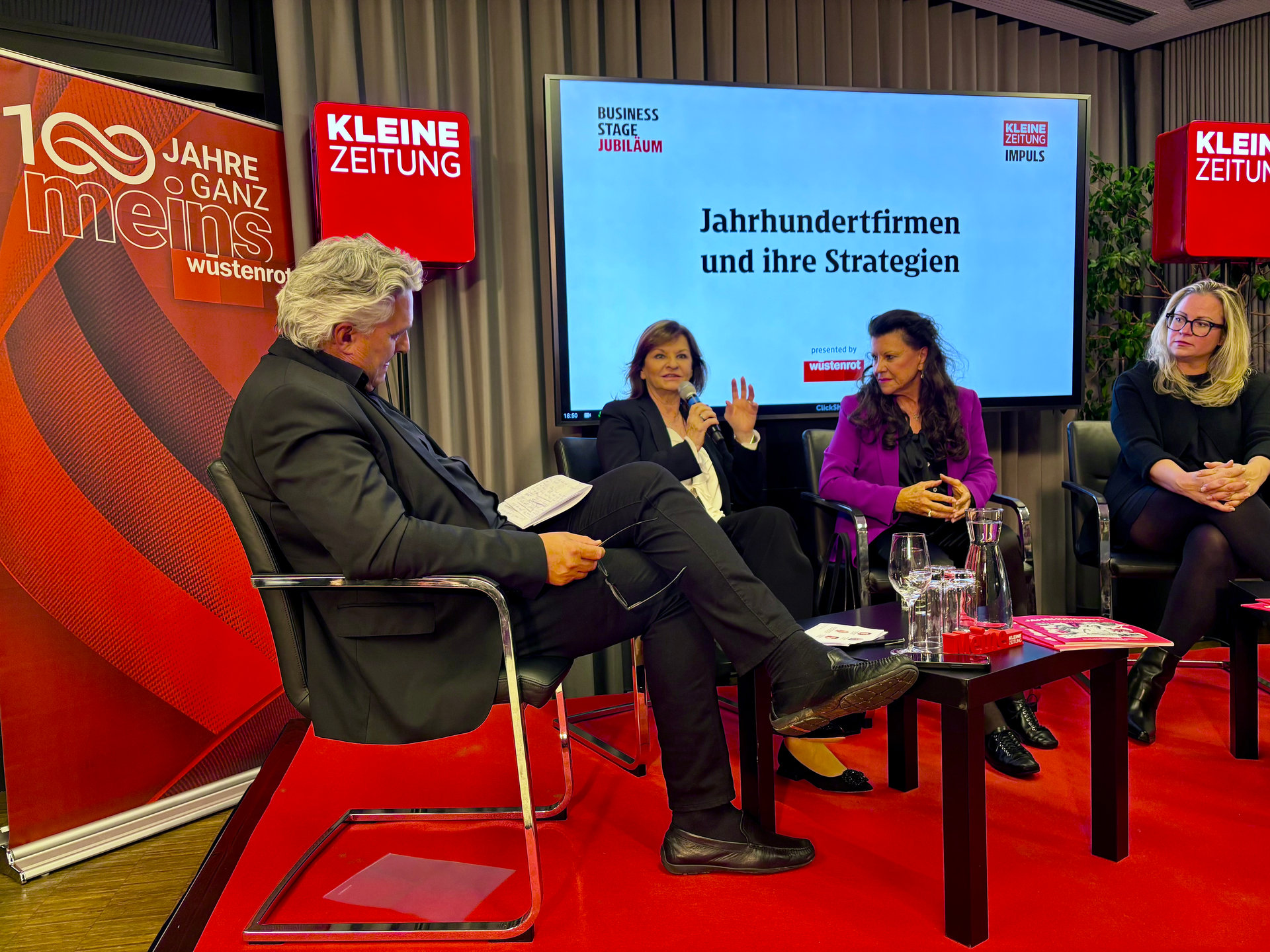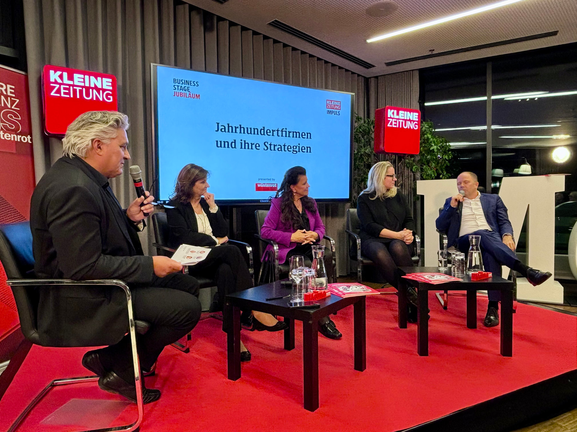 Unter der Moderation von Hubert Patterer, Herausgeber der Kleinen Zeitung, diskutierten Wüstenrot Generaldirektorin Dr. Susanne Riess-Hahn, Prof. Anita Frauwallner (Institut AllergoSan), Mag. Marlies Schaden-Spätauf (SPÄTAUF Möbel) und Mag. Bernhard Rinner (Bühnen Graz) über die Erfolgsfaktoren unternehmerischer Langlebigkeit: von Tradition und Innovation bis zu Kundenorientierung, Nachhaltigkeit und Mut zur Veränderung.