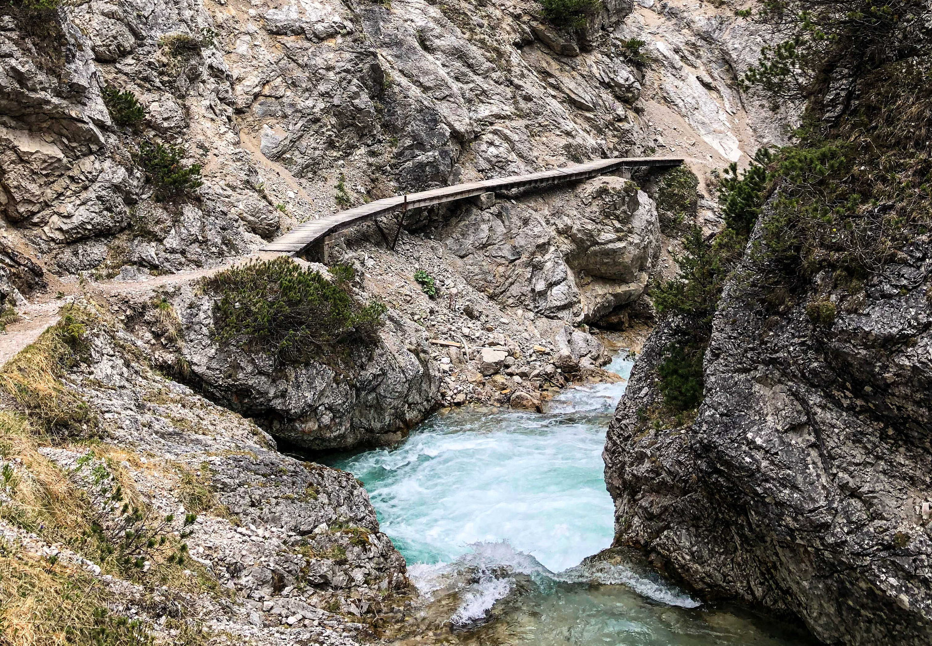 Sie steht für Romantik, Naturbelassenheit und Wildheit pur. Ausdruck dessen ist auch, dass der Steg durch die Gleirschklamm ohne Geländer auskommt. Also: Pass unbedingt besonders auf, wenn du dieses Naturjuwel in der Karwendel-Region besuchst!