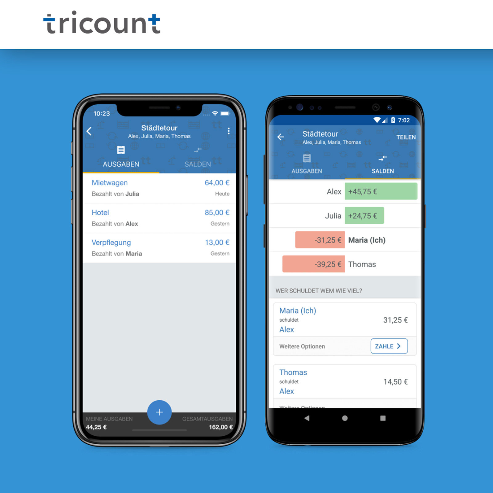 Tricount ist eine beliebte kostenlose und werbefreie App für Gruppenausgaben.